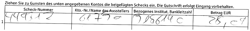 Heute früh auf meiner Hausbank einen Scheck (Nebenkostenrückerstattung 2006) eingereicht. Und es war nicht(!) die Apotheker- und Ärztebank.