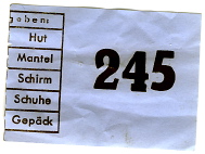 Shit. Als ich gegen halb vier meine Jacke (M65) an der Garderobe abholen wollte, war der Haken mit der Nummer 245 leider leer.